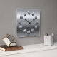 En amerikansk teckenspråksklocka med faux metallic händer på ett faux borstad rostfritt underlag.