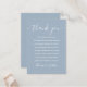 En elegant tacksamhetskortsserie för bröllopsfirande. Personliggjord med ditt speciella tackmeddelande i stilfull typografi på en dammig blå bakgrund. Du kan anpassa bakgrunden till din favoritfärg för bröllopstema. En speciell tacksamhet till dina gäster. Designad av Thisisnotme