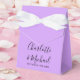 Elegant bröllopspresentbox med stilfull signaturskriptnamn och speciellt datum i modern typografi på en lilafärgad lavendelfärgad bakgrund. Du kan anpassa med ditt eget tackmeddelande under locket. Ett perfekt sätt att tacka dina gäster! Designad av Thisisnotme©