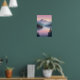 Denna drömma scen i sjö i bergstrakterna har en glödande solnedgång över misttäckt backe täckt av gräs. Försiktig rosa och violetta toner reflekterar över vatten yta och ger en känsla av stillhet och lugn. Perfekt för älskare av serennaturkonst och fredliga mur décor.