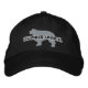 Denna fantastiska lumberspansk hatt är broderad med hund aveln silhouette, som står med namn tryckt framför. Sportens silhuett är en mörk silver grått och textkonturen är vit. Fantastiskt på våra svarta hattar!