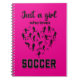 Silhouette-flickor som spelar fotboll anteckningsbok