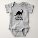 Den moderiktiga gulliga svart brontosaurussilhouetten och formulera "babyen Saurus" i svart skrivar.