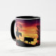 Detta "av en snäll" mugg…, Presenterar en Silhouette av en Cowboy på en häst som samlas ett Longhornråd under en härlig orange