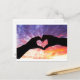 Silhouette-hand i hjärtform och vacker himmel vykort
