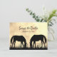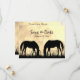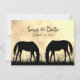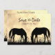 Det här Save the Date bröllop-meddelandet innehåller två silhuette-hästar som betar i fält vid solnedgången.