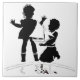Silhouette med flicka och pojke och modellbåt kakelplatta