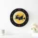 Stor Round Wall Art Clock och heminredning med flygande Wicked Witch Silhouette av TheFabricSeal är en läskigt tittar smak med sin häftande häxbroom och hennes koniska, koniska häxhatt när hon snabbt går igenom mörken om natten himlar och går framför fullt Halloween måne.