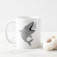 Börja din dag med kreativitetens stänk. I mugg finns en silhuett för val, som är gjord från en skola med liten fisk. Det finns ett spår av fisk som simmar höger in i valens mun, ge utformningen av en känsla av rörelse. Det är perfektens gåva till havslivet fläkt, kaffe älskare och alla som uppskattar lite undervattensmagi med sin morgonbrygga.