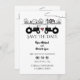 Detta svarta och vita bröllop spara datum-meddelande har två silhuettraktorer i kärlek. De ställs mot en charmodlare i teckning land. -
