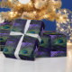 Silkeslen purpurfärgad påfågelfjäder presentpapper