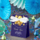Tack för elegantens födelsedag. Du föredrar en låda med guld-ballonger och gnistrande stjärnor på en marin blå backdroppe.