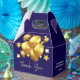 Tack för elegantens födelsedag. Du föredrar en låda med guld-ballonger och gnistrande stjärnor på en marin blå backdroppe.
