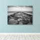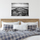 Detta är ett originalfotografi av svart och vitt som fotografen Tim Prist längs New jersey kusten. Det här fotot har en stor pipa som ser oändlig ut medan det släta och silkesaktiga havet lätt sprejer mot sten. Milda moln är över horisonten för att skapa en lugn och stillastående scen. Den här duken är ett vackert biet av konst som passar vilken dekoration som helst och som kan ge perfekten till dig själv eller till vem som helst som kärlek stranden.