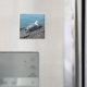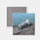 Om man stannar på gråaktig sten vid sydkajen i Barnegat Light, ses denna vild sillgull som bad under sommaren sol. Vuxen fiskmås har ett vitt huvud med grått bakåt och vingar, vita svan och vita fläckar på svarta vinge. Enskilda fjädrar från vinge visas i detta foto. Lugn blå vatten i Atlanten syns i detta sjölandskap. Det här scenfotot från färg togs i Barnegat fyr State Park på Long Beach Island i New jersey. Jersey Shore-landskapet på LBI är perfekt för den levande fågeln.