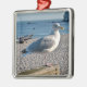 Sillgull på ett trästängsel julgransprydnad metall