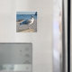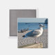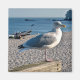 Stängande sillgull (Larus argentatus) genomborrad på ett trästängsel och etretat-stranden i Normandie i Frankrike