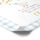 Förhöj din dryckesstation med denna Silly Goose Is Soon to Be on the Loose Mimosa Bar-skylt. Designad med det signaturmässiga mjuka blåa gingham-mönstret och den charmiga vita gåsen med en kokett slinga, lägger denna skylt till en fantasifull men ändå förfinad detalj till din dryckesdisplay. Perfekt för en baby boy shower-brunch, den samordnar sömlöst med matchande koppar, servetter, tallrikar och bordsskyltar från Silly Goose-evenemangssviten. Idealisk för en gåt tematisk baby shower, blå gingham-baby shower-dekoration och brunch-baby shower-tema.