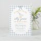 Silly Goose Blue Bow Duck Gingham Baby Shower Inbjudningar