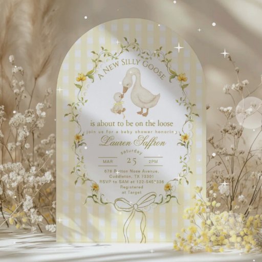 Silly Goose Könsneutral Gul Bebis Shower Inbjudningar