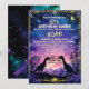 Siluetter av dinosaurier med en stjärnhimmel och en lysande måne i nattlig dinosaurietema. Perfekt för dinosaurieälskande barn till deras födelsedagsinbjudan.