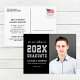 Fira din examen med detta moderna examensfest-kort som har en fet ”2026 Graduate”-text i silverfärgad varsity-stil på en snygg svart design. Lägg till ett favoritfoto, namn, skola och festdetaljer för ett enkelt, postklart format. Den silvergråa accentfärgen ger det en ren, klassisk look som fungerar bra med många skolors färger. Baksidan innehåller adresslayouten och utrymme för detaljer om examensfesten.