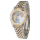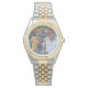 Make a statement with this unique silver and gold two-tone bracelet watch, exclusively available at ES 1963. The standout feature is the custom artwork displayed on the watch face: a striking scene of a man in Turkey selling fish from the back of a car, designed to bring a piece of culture and storytelling to your everyday look. This watch isn’t just an accessory—it’s a conversation starter and a wearable art piece.