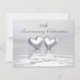 En silverfärgad 25-års silverjubileums inbjudan med två silverhjärtan som flyter på vatten. Anpassa exempeltexten på baksidan med din egen information för din händelse.