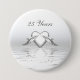 Pinback-knapp med min ursprungliga utformning av två delfiner och ett silver-hjärta på vatten. Anpassadet säger "25 år".