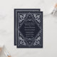 Ange stadium för en elegant-händelse med denna allt-i-ett-inbjudan. Den tarotinspirerade bröllopsinbjudan har en Art nouveau ram i silver mot en svart bakgrund - perfekt för en saga om magi i i kärlek. Baksidan innehåller information om bröllop och en personlig QR-kod. Observera att silver på denna inbjudan INTE är äkta folie och att den är tryckt på platt färg.