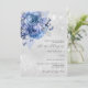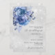 Falskt silverfärgat bakgrund dekorerat med blå blommor och falska glittergnistor. Anpassa och lägg till era namn och bröllopsdetaljer. Svarta bokstäver.