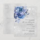 Faux silver tittar bakgrund med blå blommigtar och faux glitter-gnistor. Anpassa och lägg till information om namn och bröllop. Svart färgad brev.