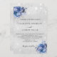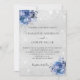 Faux silver tittar bakgrund med blå blommigtar och faux glitter, gnistor. Anpassa och lägg till information om namn och bröllop. Svart färgad brev.