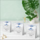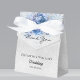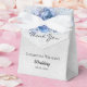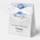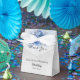 En snyggt faux silver tittar bakgrund som är dekorerad med blå sparkler och blommor. Med texten: Bröllop och Tack skrivet med ett modernt handskript i stil. Anpassa och lägg till namn och datum.
