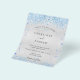 Falskt silver metalliskt utseende bakgrund dekorerad med blå hjärtan. Personifiera och lägg till dina namn och bröllopsdetaljer. Svarta bokstäver.