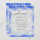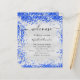 En falsk silverbakgrund, dekorerad med kunglig blå konfetti, gnistrar. Svart text. Anpassa och lägg till era namn och vigselprogrammet.