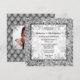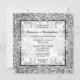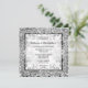 Vacker falsk silverglitter kantad med svart och ömtåliga blommande virvlar har en textmall för din personliga texting i mitten mot en mjuk silver-bokeh. Baksidan av inbjudan har ett falskt silvergrått quatrefoil-mönster där en fotomall för det brudpar visas. Ömtåliga falska silverhörnvirvlar visas i varje hörn. Detta är idealiskt för sommar-, vår-, vinter- och höstbröllop, årsdagar och förlovningar. Du är välkommen att ta bort eller flytta runt mallarna och ändra storlek och stil på teckensnitt om du önskar.