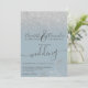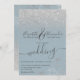Silver blommigt, dammblått manus glitter bröllop inbjudningar