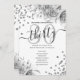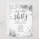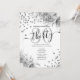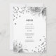 Skriptmallen elegant Glam Silver Blommigt Glitter 30års födelsedag med program- och menytext, blomsterarrangemang, glitter konetti och modernt typografiskt skript.