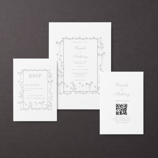 Silver Blommigt Gräns Bröllop Inbjudningar