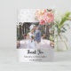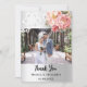 Ett modernt bröllop Tack-fotokort. En faux silver tittar bakgrund som dekorerats med rosa ros, blommor och snöre. Anpassa och lägg till fotot på framsidan och tackkort på baksidan.