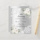 För en elegant och romantisk 60:e bröllop-årsdag. En faux silver tittar bakgrund som dekoreras med vita blommigtar, ro och vita snöre. Anpassa och lägg till namn och information. 1 lakan = 1 inbjudan tryckt kant till kant.