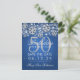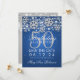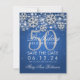 Eleganten "50:e Födelsedagsfesten" sparar datumdesignen med Silver Faux Glitter Snöflingor & bokeh-glödande ljus på blå bakgrund och anpassad namn + detaljtext.