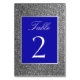 Enkelt, modernt kalligrafiskript, elegant glitter silver och royal blått bordsnummer. Perfektens val för vinterbröllop med glam i contemporaryn!