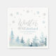 Den pappra napkin-konstruktionen har silver glitter & baby blue snöflingor och en snyggt typografi" Winter ONEderland" med vackra vinterskogar träd. Matchningsinbjudningar och party-tillbehör finns på min butik BaraBomeDesign.
