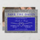 Modern, enkel kalligrafi skrift, elegant kunglig blå och silver glitter Bröllop Save The Date inbjudan med två datum och bild på paret.