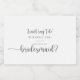 Denna minimalistiska kalligrafi av silver-bruden frieri ett mousserande vin-märke är perfekt för ett rustiskt bröllop. Den enkla utformningen och utformningen av eleganten har skripttypografin klassisk och finare i silver. Ändra ordalydelsen så att alla ledamöter i brudens sida blir tillfrågade.
