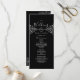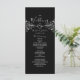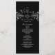 Elegant, modern, svart och vit bröllopsprogram med silverrep hjärta och gammal förgylld blomster broderi.