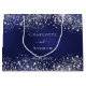 En marin blå bakgrund som dekoreras med faux silver konetti, gnistor. Den blå färg är ojämn. Anpassa och dejta, och bruden och Gods namn.