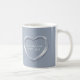 Anpassa den här årsdagen för silver bröllop grått silver färgad mugg med 25-årsdagen för par namn och år av giftermål. Silver hjärteffektkonst och design av Sarah Trett. www.sarahtrett.com för www.mylittleeden.com på zazzle